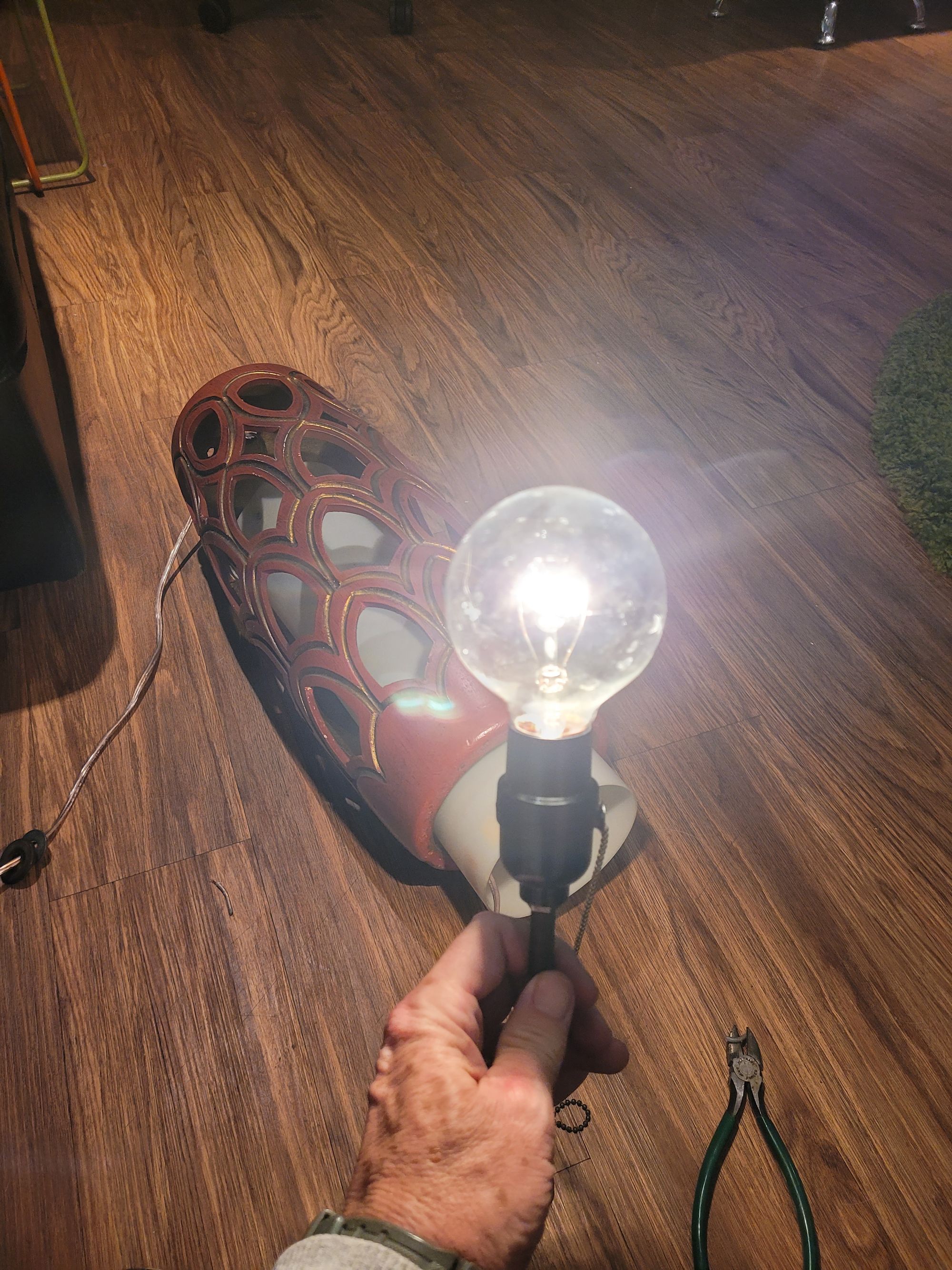 I finished my lamp rewire project from last week on Friday. I nearly had to buy more parts at the last minute because the threaded shaft holding the old light together would not unscrew from the broken bit of the old bulb socket. I soaked the old bolt head and threaded rod with WD 40 and let it sit overnight. The following day I successfully separated them and finished my project. Taking a step back is my new best friend.